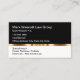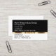 Cartes de visite d'avocat de classe pour un avocat qui pratique dans les domaines du droit des études, de la planification successorale et des soins aux aînés. Créé en or noir et blanc avec un élément design élégant de ton or qui ajoute de la classe au design.