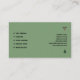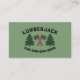 A business card with crossed axes and fir trees illustration on a green background for carpenter, woodworker and lumberjack services (tree removal and pruning, firewood, stump grinding and more). It comes with phone number, full contact and list of services on the back!