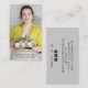 Ce carte de visite dispose d'un plan photo professionnel avec boulanger, traiteur de desserts. Remplacez cette photo avec espace réservé par votre propre photo. L'envers présente les coordonnées et les médias sociaux. Vous pouvez customiser la taille du texte, la police, pour adapter votre style personnel. Remplacez cet exemple de photo de porte-place par votre propre carte de visite d'orientation portrait. Voici un conseil : quand vous customisez votre carte.