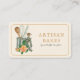 Modern watercolor frame peach floral and plaid baker, bakery, pastry chef business cards in pretty watercolors with baking utensils: frosting spreader knife, whisk and wooden spoon. Pink, green, burnt sienna and black and white plaid. For a home baker, dessert caterer, pastry chef or bakery. The title font is a rustic antique typeface from the 1700's still admired and in use today; an earthy and textured style font.