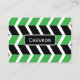 Design original Carte de visite de Chevron Vert Noir par Nisha Prabhu. Entièrement Personnalisable. Personnalisez avec vos détails. Faites une impression durable grâce à notre Carte de visite en Chevron Black Green ! Doté d'un motif chevron audacieux qui combine à merveille le noir profond et le vert vif, ce carte de visite est conçu pour se démarquer dans n'importe quel cadre professionnel. Parfait pour les entrepreneurs, les créatifs et tous ceux qui cherchent à mettre en valeur leur marque personnelle, cette carte reflète une image moderne et dynamique qui attirera l'attention. Les rayures de chevron frappantes offrent un décor contemporain et élégant.