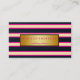 Carte De Visite Bandes chics en or rose et blanc marine