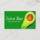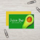 Un carte de visite adapté à un bar à jus, une boutique de jus de fruits, un commerce de jus de fruits verts ou de boissons santé hipster. Cette carte est élégante, élégante et présente une aquarelle d'art originale illustrée par l'artiste Sacha Grossel d'un avocat contre un arrière - plan vert moderne et élégant. Cette carte est entièrement personnalisable pour inclure vos propres détails personnels et des liens vers les pages instagram, web ou facebook.