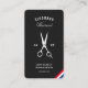 Vous recherchez un carte de visite personnalisable pour votre barbershop ? Notre élégant Barbershop moderne noir rouge bleu blanc ciseaux modernes Barber ciseaux coupe-cheveux design avec code QR est l'ajout parfait à votre établissement! Dispose d'un design simple ciseaux noirs, attrayant qui sont sûrs d'attirer les clients. La carte est entièrement personnalisable, vous permettant d'ajouter votre propre texte pour promouvoir vos services ou offres spéciales.