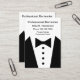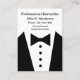 Cartes de visite graphiques de smoking pour un barman professionnel, un modèle de carte de visite personnel de concierge, ou d'assistant personnel conçus comme conception bilatérale avec l'image d'un graphique de smoking et de cravate d'arc et de la disposition simple que vous pouvez customiser en ligne. Présenté sur les cartes de visite de grand format qui dans la verticale sont plus larges que des cartes de visite de taille standard pour un impact plus visuel.