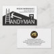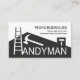 La couverture présente une conception créative de toit gris incorporant une échelle qui agit comme la lettre "H" pour le mot "Handyman". En haut à droite se trouve votre nom prestigieux et les coordonnées. En surplomb, dans une couverture blanche, un logo doré domine que vous pouvez utiliser est en haut. Il est suivi par votre nom prestigieux, les coordonnées et une option de slogan pour faire connaître vos services. Une grande carte pour le bricoleur, les entrepreneurs généraux, les peintres à utiliser.