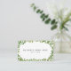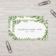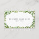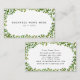 Un carte de visite botanique avec une bordure de feuilles verts devant et derrière.