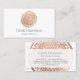 Un cercle d'or imitation rose peint à la main avec une gravure de mandala blanc devient un logo unique sur ces cartes de visite modernes. L'or rose offre une esthétique de luxe, tandis que le mandala donne une ambiance un peu boho. Ce design a été développé pour les salons de beauté, les entreprises de soins de la peau, les boutiques, les massothérapeutes et plus encore. Cette carte de visite double face dispose d'une grande place à l'arrière pour vos coordonnées. Art et design © 1201AM Design Studio | www.1201am.com