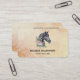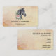 Cartes de visite avec une belle illustration d'une tête de cheval noire avec un embellissement floral fantaisie par son cou. Peinture animale élégante et classe. L'arrière - plan a un design abstrait soigné dans une couleur jaune clair avec des faux éclats d'or.