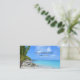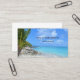 Business cards with a scenic tropical photograph. A secluded beach with white sand and turquoise water.