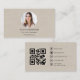 Carte De Visite Beige Linen Photo with QR Code Social Media