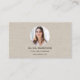Showcase your personal brand with this beige linen photo with QR code social media business card. The soft linen texture adds natural warmth and elegance, while your profile photo creates an immediate visual connection. A built-in QR code links directly to your social media or website, making networking effortless. Perfect for influencers, creatives, photographers, beauty professionals, and entrepreneurs who want a clean, modern, and tactile card that blends personal branding with digital convenience.