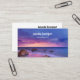 Cartes de visite avec une belle photo aux couleurs saisissantes de violet, bleu et rose au coucher du soleil. Un joli littoral parsemé de rochers.