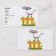 Carte De Visite bête chat gris debout sur une clôture caricature