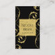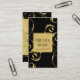 Carte De Visite Black & Faux Gold Floral Swirl Élégant