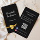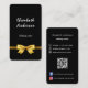 Un arrière - plan noir classique. Décoré d'un arc doré. Personnalisez et ajoutez vos nom, titre et coordonnées. Ajoutez votre URL/lien de site Web au code Qr. Avec des icônes Facebook et Instagram. Texte blanc.