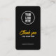 Ce simple et élégant carte de visite de remerciement est la façon parfaite de montrer votre appréciation à vos clients. Le design comprend un arrière - plan noir propre avec un espace pour votre logo et un message manuscrit "Merci" dans une couleur rouge et audacieuse. Caractéristiques : Conception minimaliste : Cette carte est tout sur la simplicité et l'élégance. Il est parfait pour les entreprises qui veulent faire une impression durable avec un look propre et professionnel. Espace logo personnalisable : Ajoutez facilement votre logo à la carte pour la personnaliser avec votre marque. Message Merci : Un message sincère pour exprimer votre appréciation pour l'entreprise de vos clients. Versatile : Cette carte peut être utilisée pour une variété d'entreprises, y compris les magasins de détail, les restaurants, les salons, et plus. Impression de haute qualité : La carte est imprimée sur du papier épais et durable pour une sensation de qualité supérieure.