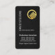 Cover features a black grunge design layout. At the top is a gold global logo you can use with your prestigious name which is held vertically and the job title at its base. This is followed by the business name, contact details and a slogan caption option.