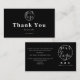 Custom black business thank you card featuring a bold modern design with your logo on the front and a clean "Thank You for your order" headline. The backside delivers your personal message, a discount code to drive repeat purchases, and your social media handles — all in a professional branded layout.