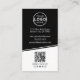 Black Contemporary Photo QR Code Logo Vertical Business Card. This contemporary vertical business card is designed for corporate professionals, small business owners, freelancers, and consultants who value clean, modern design. The front features a striking black background with sleek white fonts, showcasing your photo, company logo, name, and title or business name in a bold and professional layout. The back continues the black aesthetic with your contact details, a scannable QR code for instant connections, and minimalist social media icons, paired with the phrase "Connect with us!" for a polished and approachable touch. The sharp contrast of black and white, paired with clean typography, gives this card a refined and versatile style, perfect for any brand looking to leave a strong impression. Personalize yours today to stand out with confidence and style!