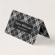 This elegant and modern business card features a black and white plaid background. The text combines modern sans serif fonts for a classy and sophisticated look.