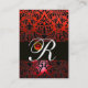 Carte De Visite BLACK RED DAMASK MONOGRAM FLORAL, Ruby Gemstone