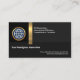 Dans le coin supérieur gauche se trouve un logo mondial or que vous pouvez utiliser avec votre prestigieux nom et titre de poste sur la bande dorée verticale. Au sud de la base se trouve le nom de l'entreprise, les coordonnées et une option de slogan dans la direction opposée.