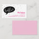 Carte de visite mignon en blanc, noir et rose chaud avec bonjour! écrit à l'intérieur d'une bulle de discours noire, entouré de petits points. Votre nom et vos coordonnées en rose chaud. Le dos est blanc rose pâle pour que vous puissiez écrire les choses à la main à vos clients si nécessaire.