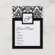 Carte De Visite BLACK WHITE DAMASK CARRÉ MONOGRAM, métal de champa
