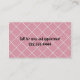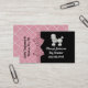 Carte de visite orienté de chien mignon fait avec un arrière - plan rose et noir, avec des graphiques d'un ruban et d'un arc roses et noirs de point de polka entre les deux couleurs. Les graphiques de l'les graphiques doux d'un caniche blanc semblant pelucheux décore le côté noir supérieur de la carte, avec le texte blanc fait sur commande sous lui. Courses faites sur commande noires des textes en longueur, du côté rose de l'avant. Un motif de croix de criss de rose et de blanc, sur le dos de la carte assortit l'arrière - plan rose, sur l'avant, et le texte noir fait sur commande est prêt à personnaliser. Personnalisez cette carte d'amusement pour vos affaires.