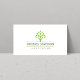 Un arbre vert et audacieux plein de feuilles est placé sur un arrière - plan blanc sur ce modèle de carte de visite professionnelle pour les entreprises d'aménagement paysager. © 1201AM CREATIVE