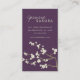 Crème Blanc Ivoire Fleurs Printemps Sakura / Fleurs Orientales Cerises Avec Branches Brown Légères Sur Une Profonde Aubergine / Aubergine / Plum Violet Arrière - plan, Zen Et Moderne Asiatique Floral Carte de visite / Carte Profil Design. Il s'agit d'un design à double face. L'arrière - plan de base peut être changé en n'importe quelle couleur de votre choix. Tout le texte est modifiable. Illustration de fat*fa*tin. Facile à personnaliser avec votre propre message texte, nom, photo ou image. D'autres styles de police, filtres photo et fonctions d'édition sont disponibles sur la page "modifier la conception". ・ ・ ・ ・ ・ ・ ・ ・ ・ www.zazzle.com/fatfatin_blue_knot