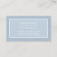 côté avant : votre nom et votre adresse (ou toute autre information supplémentaire) et votre profession... rectangle turquoise pâle sur une teinte légèrement plus sombre de bleu... un concept visuel simple et moderne pour une présentation élégante