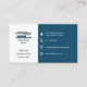 Carte professionnelle en bleu et blanc personnalisée avec votre logo, nom et titre. À côté des petites icônes, ajoutez l'adresse, le numéro de téléphone, le courrier électronique et le site Web.
