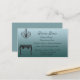Cette carte élégante est faite sur un arrière - plan bleu de gradient allant de la lumière au dessus à plus foncé au fond. Une table fleurie élégante se repose dans en bas à gauche complété par un lustre en cristal élégant. Customisez avec votre nom et information de design d'intérieur dans votre choix des polices.