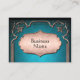 Un look satiné, imprimé damassé bleu brillant orné d'un look métallique et victorien de bronze. Dispose d'un placard en bronze pour vous permettre de personnaliser. Un design très frappant. La carte peut être personnalisée à l'avant et à l'arrière avec toutes vos informations professionnelles.