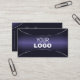 Carte De Visite Bleu foncé élégant avec bordure et logo en argent
