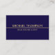 Le bleu marine professionnel et le carte de visite d'or mini comportant le nom et la profession dans le style de police classique d'empattement d'or avec de l'or rayent au milieu.