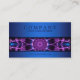 Carte de visite moderne élégant avec le morceau d'un mandala pourpre et bleu montrant sur l'avant avec un arrière - plan bleu. Cliquez sur la personnaliser pour avoir plus de contrôle des choix de police et l'utilisation de l'espace des textes.