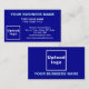 Carte de visite que vous pouvez customiser pour vos clients ou clients de trouver facilement votre adresse professionnelle et les coordonnées de votre contact. Les couleurs et le style de conception sont des textes bleu et blanc clair sur le bleu arrière - plan et les textes centrés de votre nom d'entreprise, votre nom et votre titre. Pour customiser ce carte de visite, téléchargez votre logo d'entreprise, tapez votre nom d'entreprise, votre nom, votre titre, votre adresse, votre numéro de téléphone, votre courriel et votre site Web ou votre page de médias sociaux professionnels. Après avoir téléchargé le logo et tapé des textes, veuillez vérifier l'apparence sur les côtés avant et arrière. Si l'apparence vous plaît, vous pouvez passer votre commande maintenant. Si vous avez besoin de redimensionner et déplacer le logo et les textes pour s'adapter à ce carte de visite, s'il vous plaît changer dans l'outil de conception. Vous pouvez également effectuer d'autres modifications dans l'outil de conception en fonction de l'apparence de ce carte de visite que vous préférez, comme changer la couleur arrière - plan, la couleur de police et le style de police.