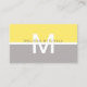 La combinaison éclatante de jaune vif et de gris épuré crée un contraste coloré dynamique, avec un grand monogramme et votre nom, assure à votre carte de visite de se démarquer dans une mer d'options traditionnelles. Le design contemporain des blocs de couleurs apporte une touche d'élégance sans encombrer les sens, ce qui le rend polyvalent pour toute industrie ou profession.