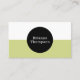 Le style rétro met en évidence ce design carte de visite personnalisé dans un bloc de couleurs bicolore. Les couleurs comprennent le vert citron et le blanc avec un cadre circulaire noir contrasté entourant votre texte. Cette conception polyvalente est un choix merveilleux pour de nombreuses professions. Personnalisez le modèle texte des deux côtés de cette carte avec vos détails.