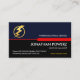 Une bordure rouge élégante délimite une couche bleue supérieure contre une pièce noire en dessous. En franchissant cette frontière rouge de succès, vous avez votre nom d'entreprise avec un logo de boulon d'éclair doré que vous pouvez utiliser, à gauche. Juste en dessous de l'onglet rouge se trouve votre nom prestigieux, le titre de l'emploi avec une légende de slogan à la base de la carte ; Vous pouvez changer la légende des remarques à ceci pour répondre à vos propres besoins de service. Dans le coin inférieur gauche se trouvent les coordonnées. Au-dessus de la feuille, le même thème de design est utilisé avec le logo or dans le coin supérieur gauche. Juste au-dessus de la frontière rouge se trouve votre nom prestigieux suivi des coordonnées et une option de slogan dans la couche noire inférieure. Une excellente carte à utiliser par les électriciens. #électricien #électricité #électricité #services électriques #entrepreneur électrique #éclairage #réparation électrique #ampoule électrique #branchement #câblage électrique