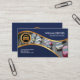 Au-dessus, dans un arrière - plan bleu similaire, toutes les informations de votre carte sont au milieu. En haut se trouve le logo. En dessous, vous avez trois options pour répertorier le type de services que vous fournissez.
