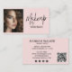 Carte De Visite Blush Pink Script Social Icon QR Code Photo Makeup