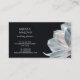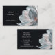 This elegant luxury business card features a silky white magnolia flower with a blush shimmer on a black background.