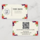 Carte De Visite Boho Beige Floral Calligraphie Script code QR
