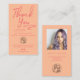 Carte De Visite Boho peach script photo logo commander merci
