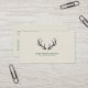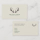 Une simple carte de visite avec une illustration élégante de bois de cerf sur un fond couleur crème, avec des textes vert forêt profond. Le design équilibre l'imagerie naturelle rustique avec les principes de design contemporains, parfait pour les activités de plein air, la taxidermie, la chasse, les activités liées à l'extérieur ou les entreprises basées sur la nature.