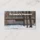 Ce carte de visite annonce le bois de chauffage à vendre. Du bois est empilé au plafond dans le hangar qui est entouré par une scène hivernale des arbres nus et de la terre neigeuse. Tout le texte peut être customisé pour adapter à vos affaires particulières.